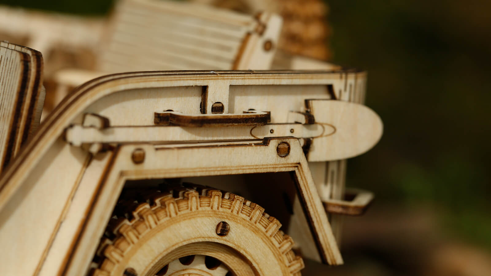 Le Puzzle 3D Bois Jeep Willys comporte 369 pièces découpées au laser.