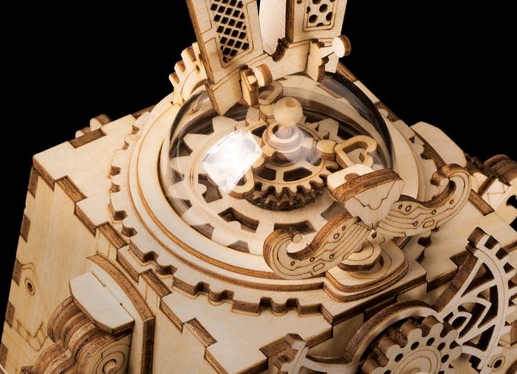 Le Puzzle 3D En Bois Boîte à Musique Lapin comporte 116 pièces découpées au laser.